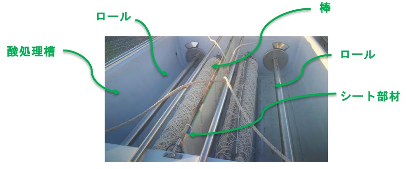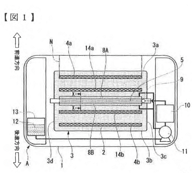 最後に、参考までに原告の実施例1(引用元:特許6898087号/【図1】は「箱型船」を上から見た図。【図2】は「箱型船」の断面で酸の浴槽内を表している図。なお、「8a」部および「8b」部は「原液吐出部」を表す。)、並びに被告製品(引用元:最高裁HP)を掲載しておく。